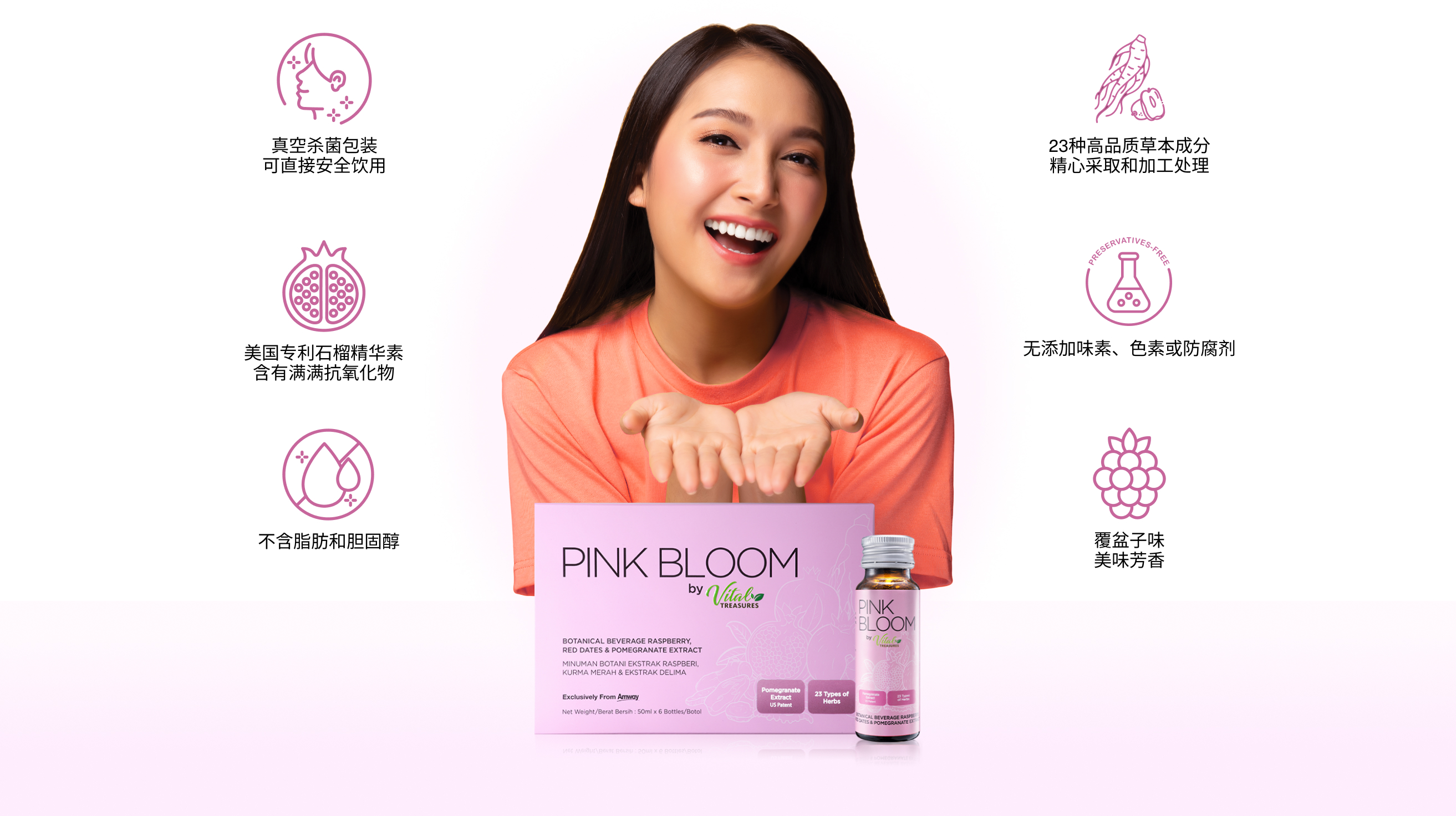 注意事项:发烧、流感或经期时不可服用。不推荐孕妇和儿童服用。不可冰冻或加热瓶子以免造成溢漏。