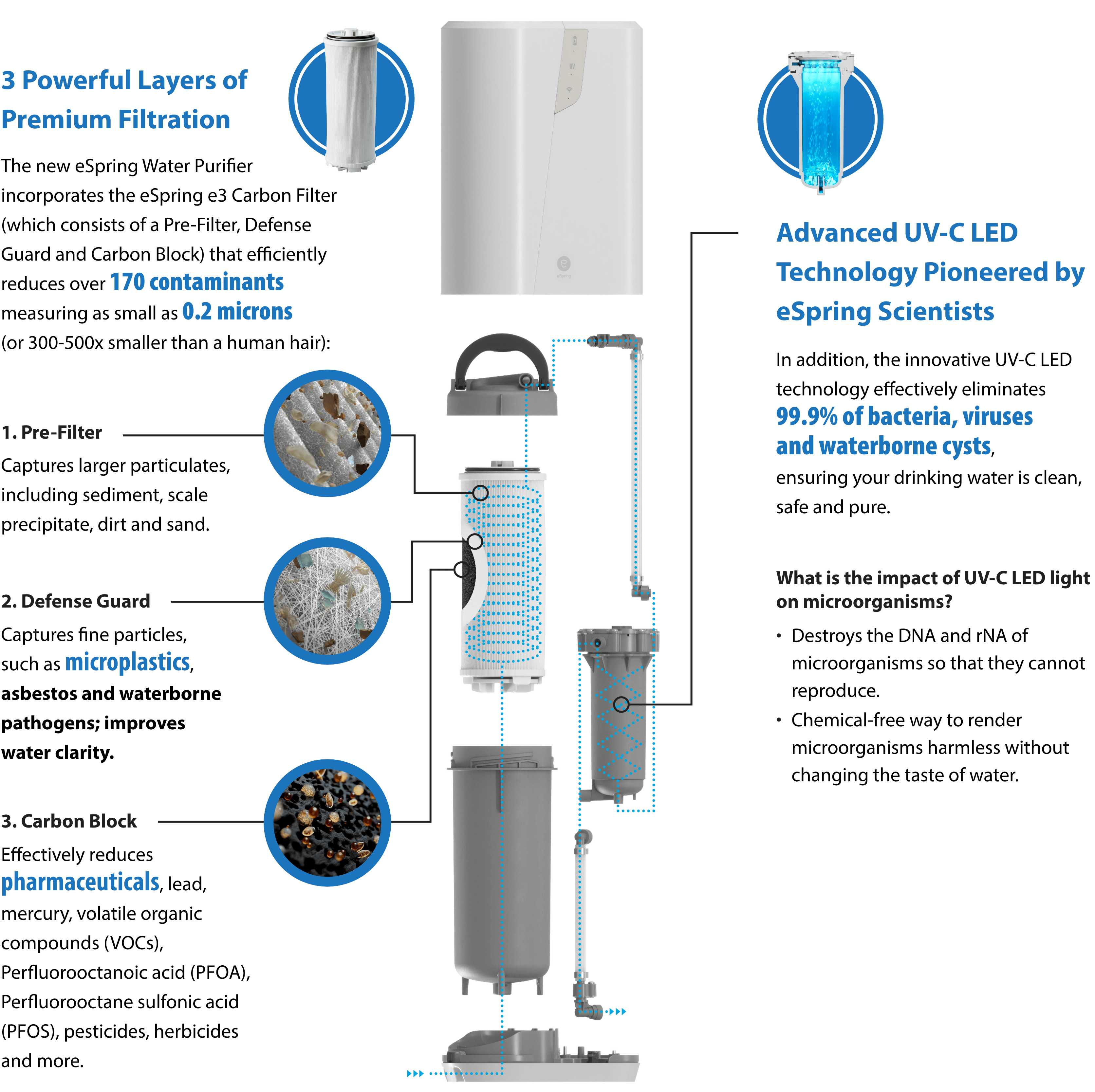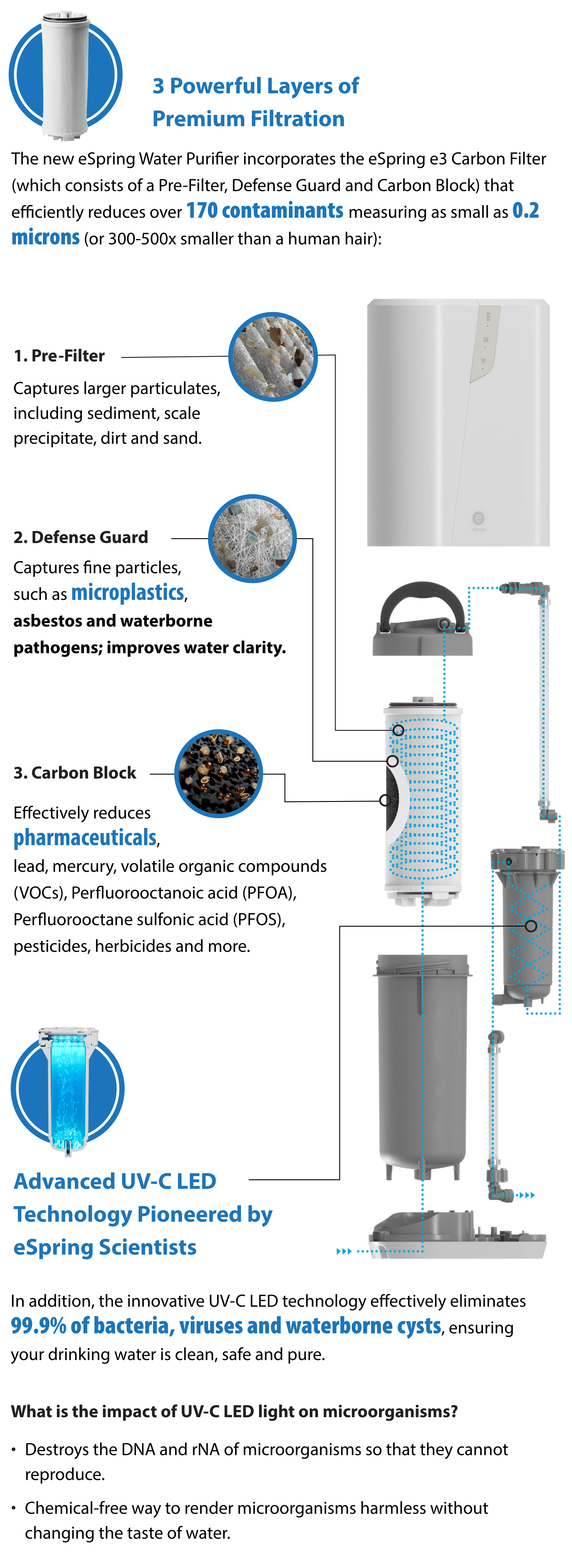 The new eSpring Water Purifier incorporates the eSpring e3 Carbon