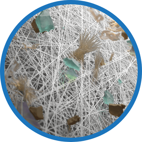 Captures fine particles, such as